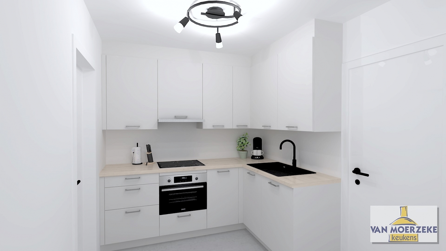 Ondanks de beperkte oppervlakte van deze keuken zijn de inbegrepen toestellen zorgvuldig gekozen om maximaal comfort te bieden. De keuken is uitgerust met een hoogwaardige inbouwspoeltafel, de Blanco Legra 45S in zwart, gecombineerd met de stijlvolle Franke Lina-kraan, eveneens in zwart.