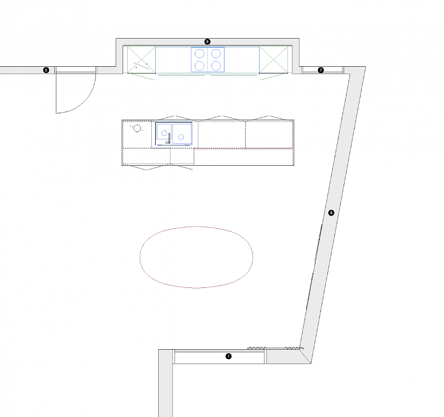 In de spoelzone wordt gebruik gemaakt van de Blanco Legra 8 spoelbak, een model met één grote en een 3/4 spoelbak, uitgevoerd in zacht wit zonder afdruipvlak. Deze opbouwspoelbak past perfect bij de rest van het keukenontwerp en zorgt voor een minimalistische, strakke uitstraling. De bijbehorende Blanco Mida kraan, ook in een strakke, moderne uitvoering, maakt het geheel compleet.