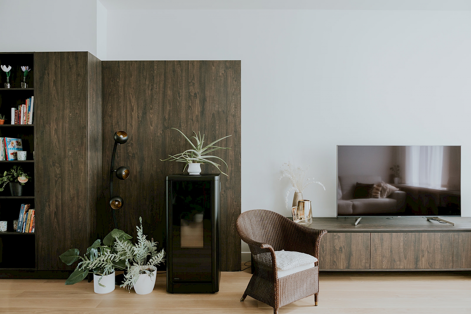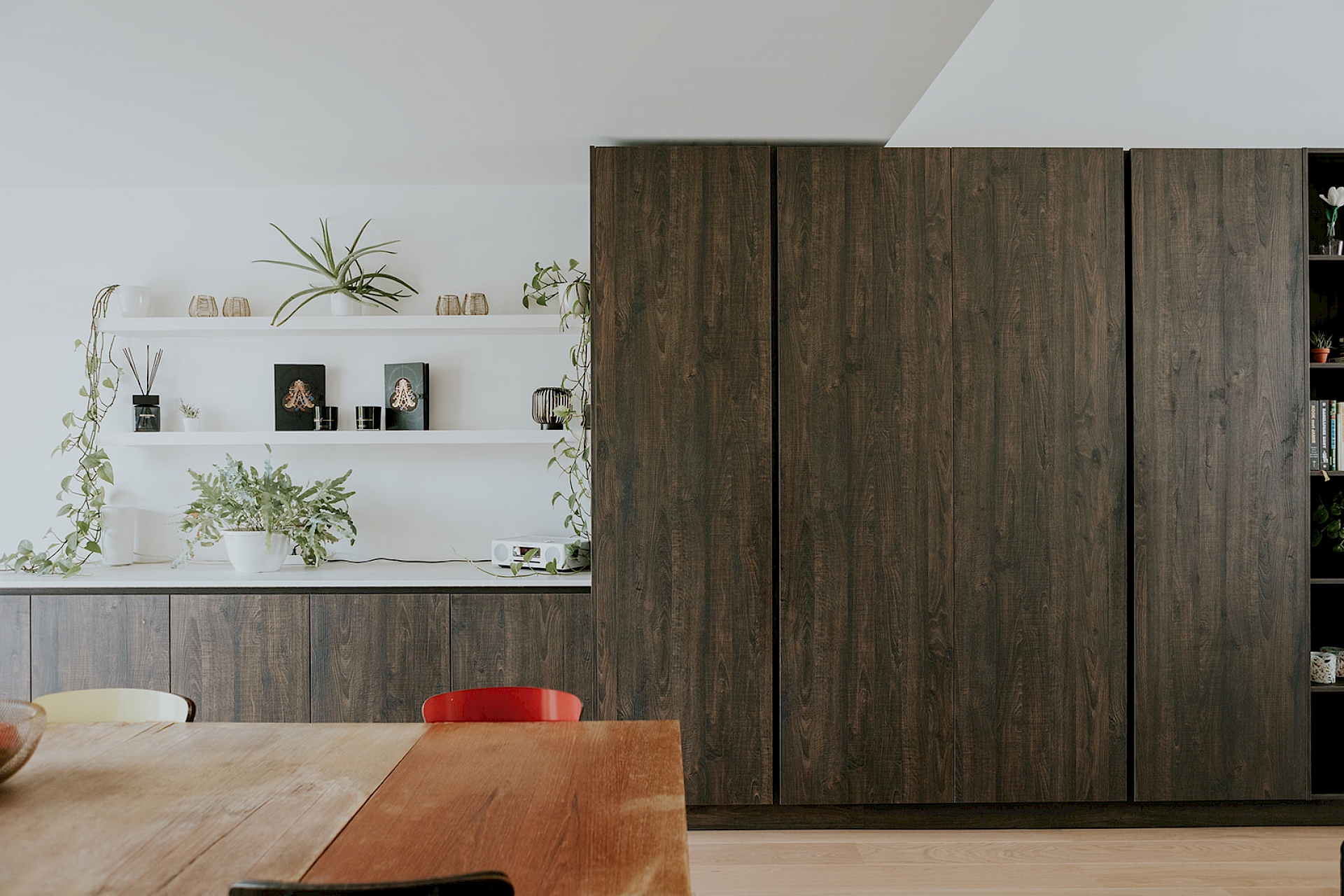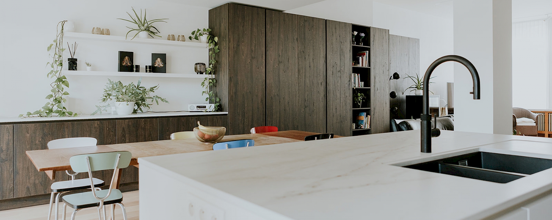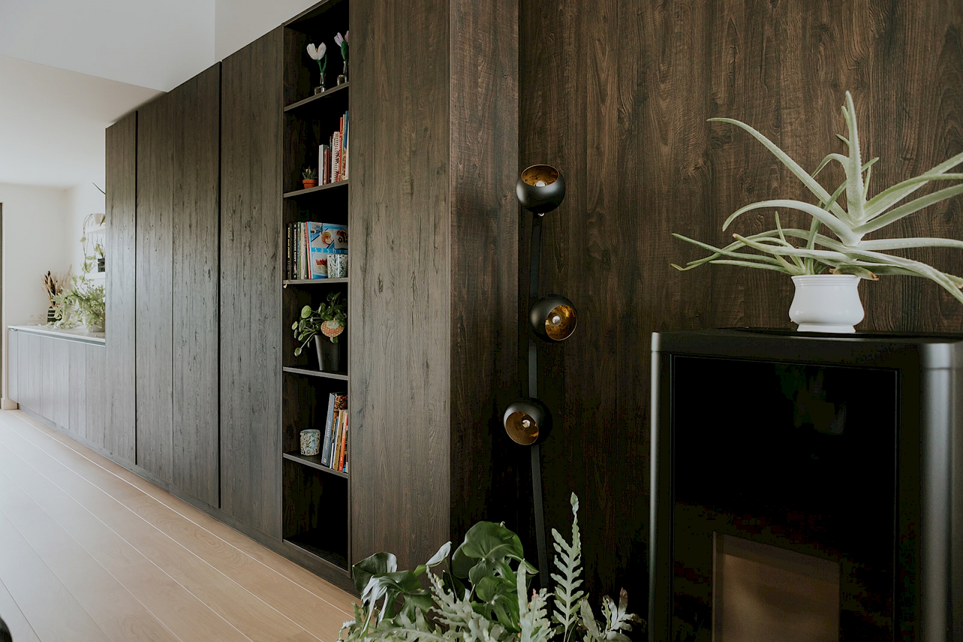Een strakke leefkeuken met warme sfeer